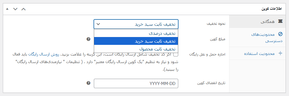اکنون وارد بخش سوم تنظیمات کوپن تخفیف شدیم که بصورت زیر است :